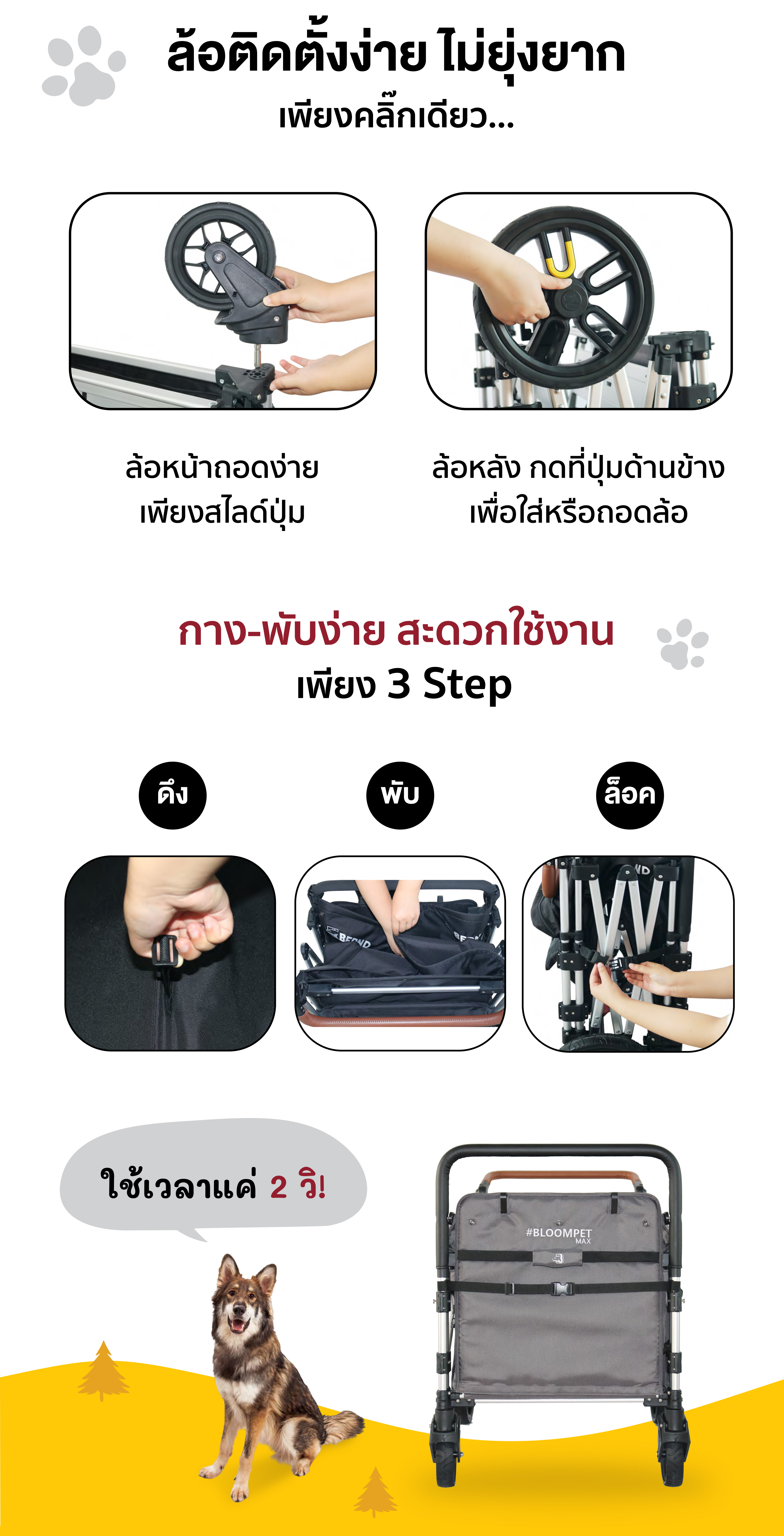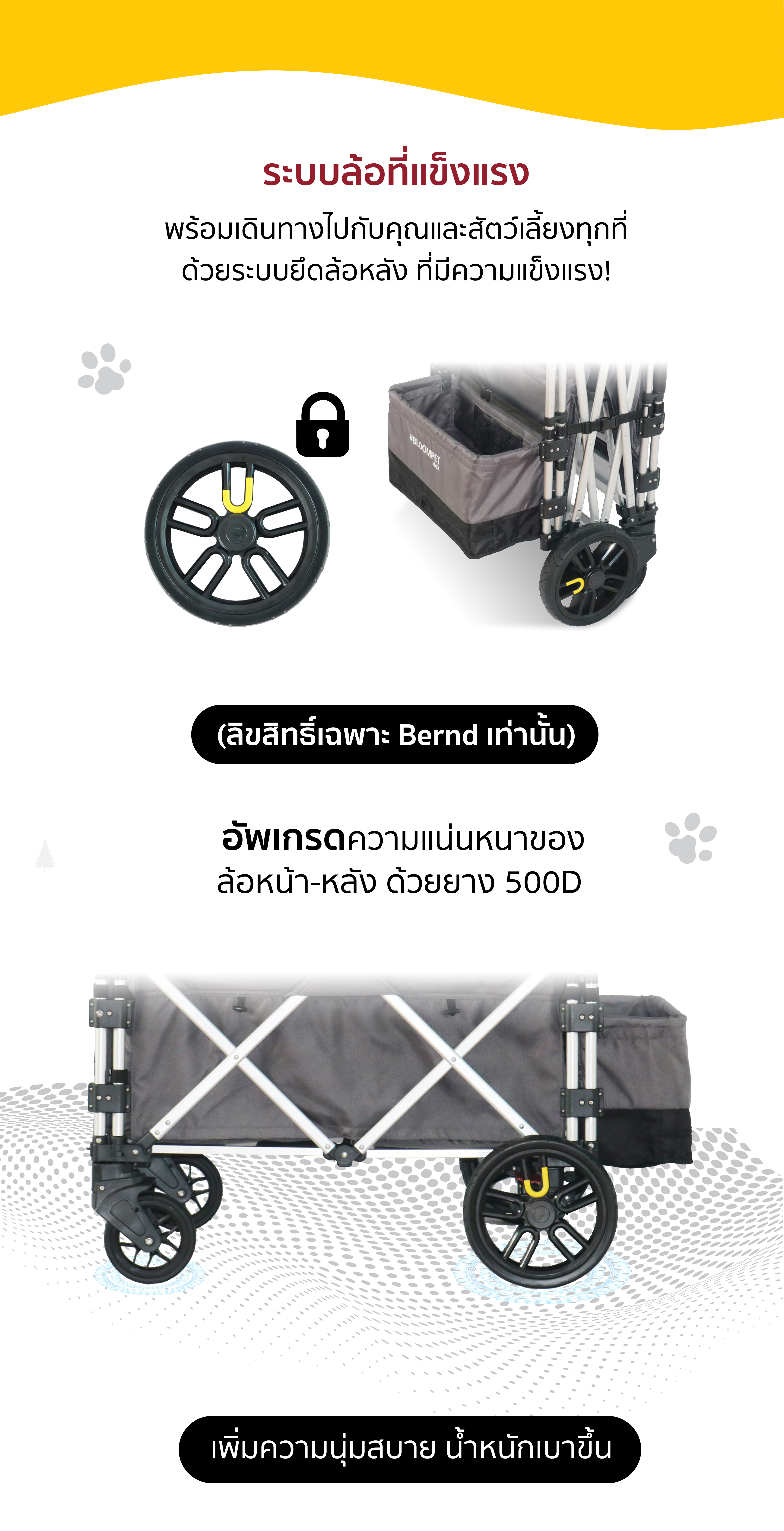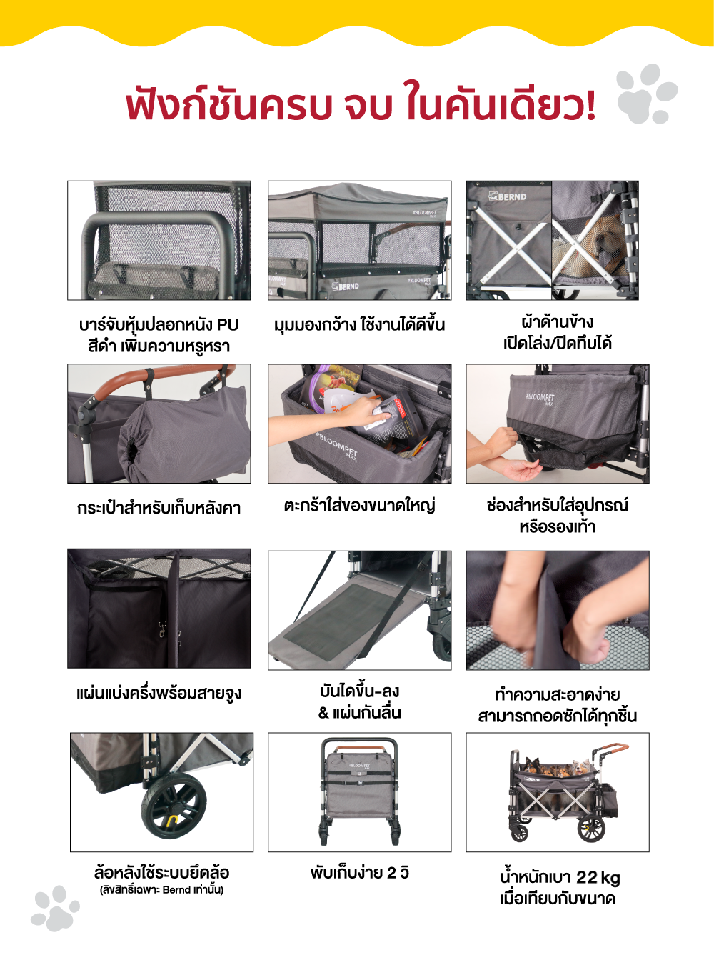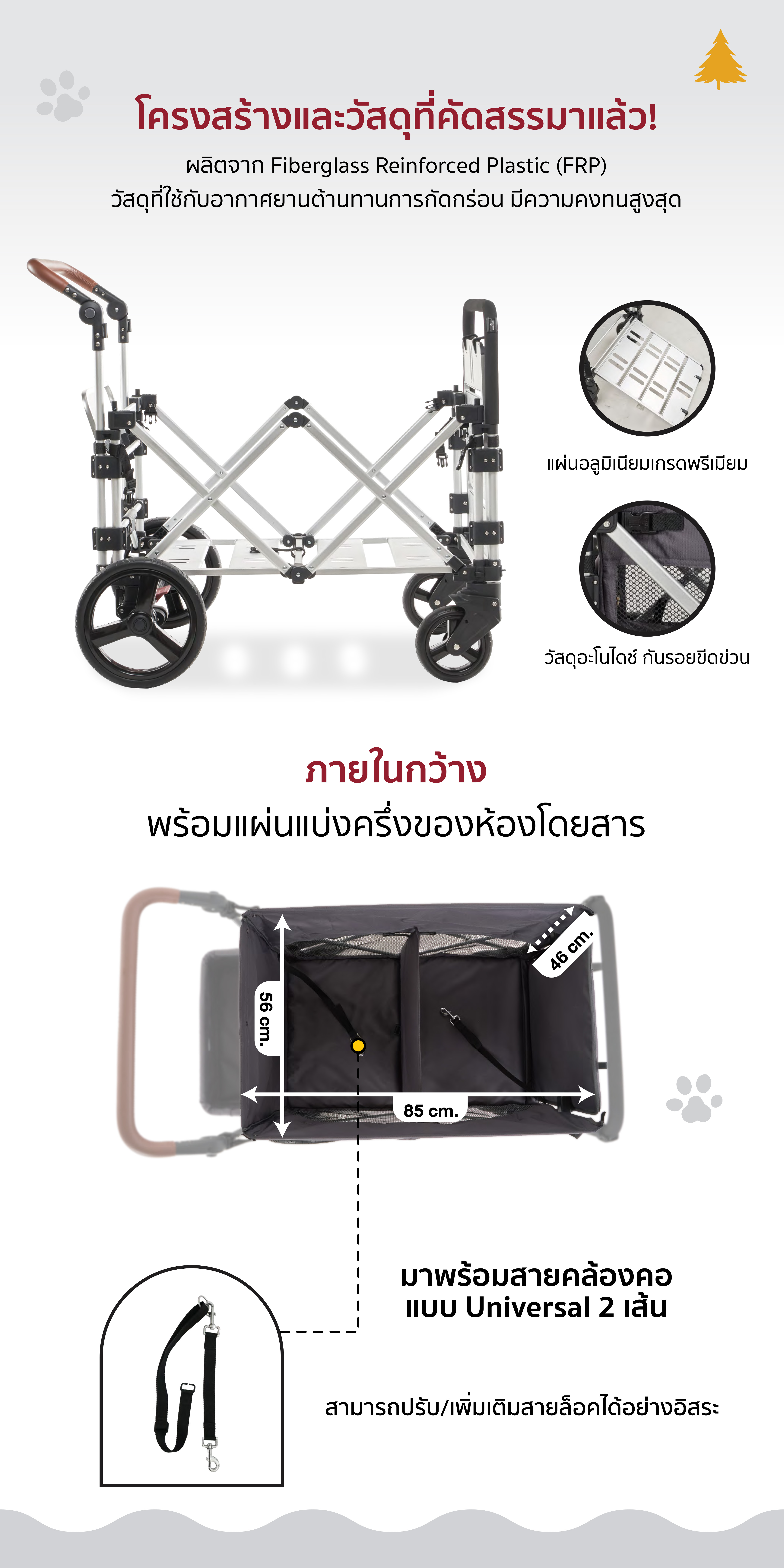 - น้ำหนักรถเข็นเพียง 22 กิโลกรัม เคลื่อนย้ายง่าย- บันไดขึ้น-ลงพร้อมแถบกันลื่น รองรับน้ำหนักได้ถึง 60 กิโลกรัม สะดวกและปลอดภัย- โครงสร้าง FRP (Fiberglass Reinforced Plastic) แข็งแรง ทนต่อการกัดกร่อน ระดับวัสดุที่ใช้กับอากาศยาน- ระบบล้อเฉพาะ Bernd ยาง 500D หนาแน่น ล้อใหญ่ มั่นคง พร้อมเดินทางได้ทุกที่- ดีไซน์หรูหราด้วยด้ามจับหุ้มหนัง PU สีดำ จับถนัดมือ เพิ่มความพรีเมียม- ช่องมองและผ้าตาข่ายระบายอากาศ เปิดโล่ง/ปิดทึบได้ตามต้องการ- ถอดซักง่ายทุกชิ้นส่วน ดูแลรักษาได้สะดวก