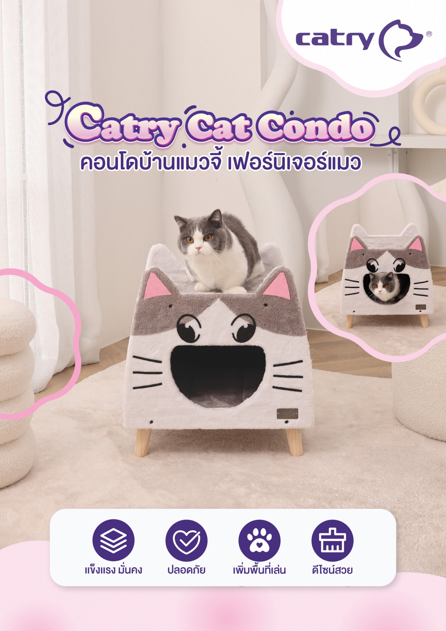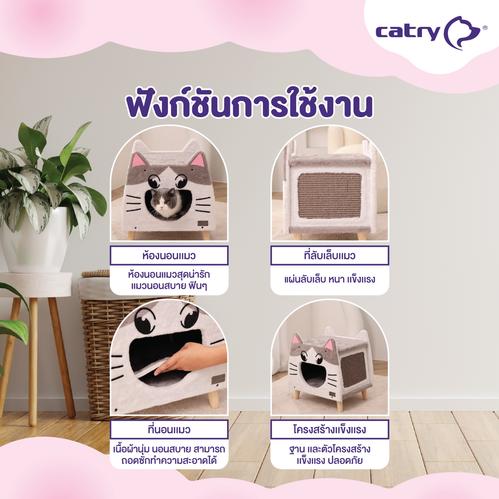 Catry รุ่น Lovely Cat House คอนโดบ้านแมวจี้ เฟอร์นิเจอร์แมว รูปทรงหน้าแมว พร้อมที่ลับเล็บ สินค้าแบรนด์จากประเทศอเมริกา